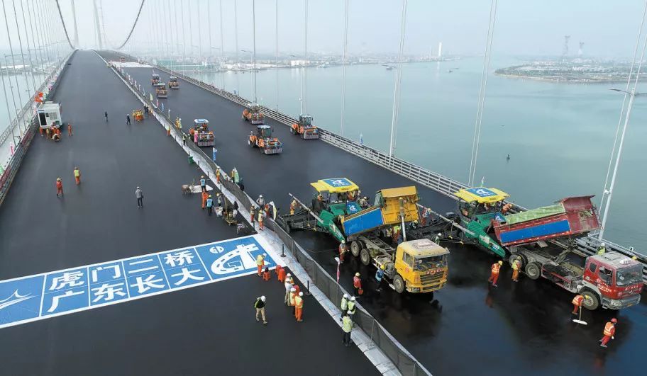 虎门二桥路面工程包括2座大跨径钢箱梁悬索桥桥面铺装、引桥及互通立交路面铺装以及通车后10年的养护工作,是广东省首个实施建养一体化工程。