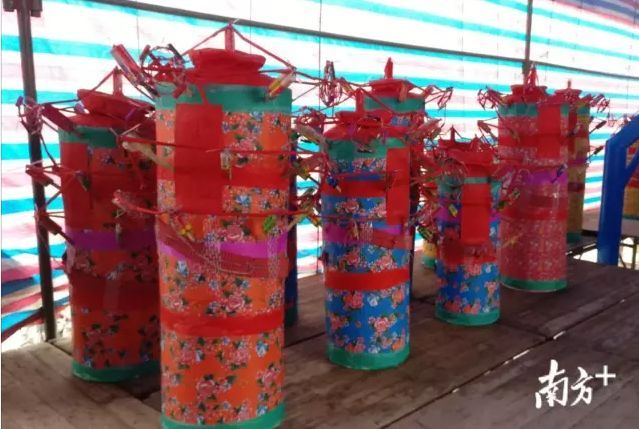 闹元宵在农历正月十四已拉开序幕,今年,同和客家村村中心公交车终点站的大空地上还特别搭建了舞台,节日气氛更加浓厚!下午3时许,各家的主妇们挑起用两个装着拜祭福仙娘娘的供品的篮子,来到村中心公交车终点站的空地上集中。