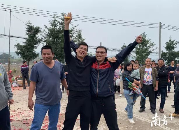 经过一番激烈的较量,一名年轻的村民获得头炮!
