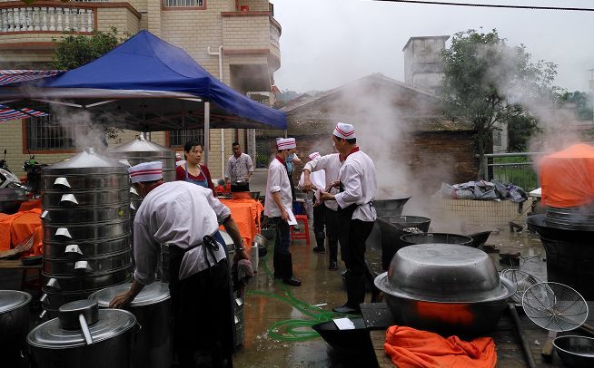 下午4点半左右,村民们正在紧张地准备今晚的团年晚饭。今晚共设置了团年晚饭255桌,预计有超过2000名村民就餐。