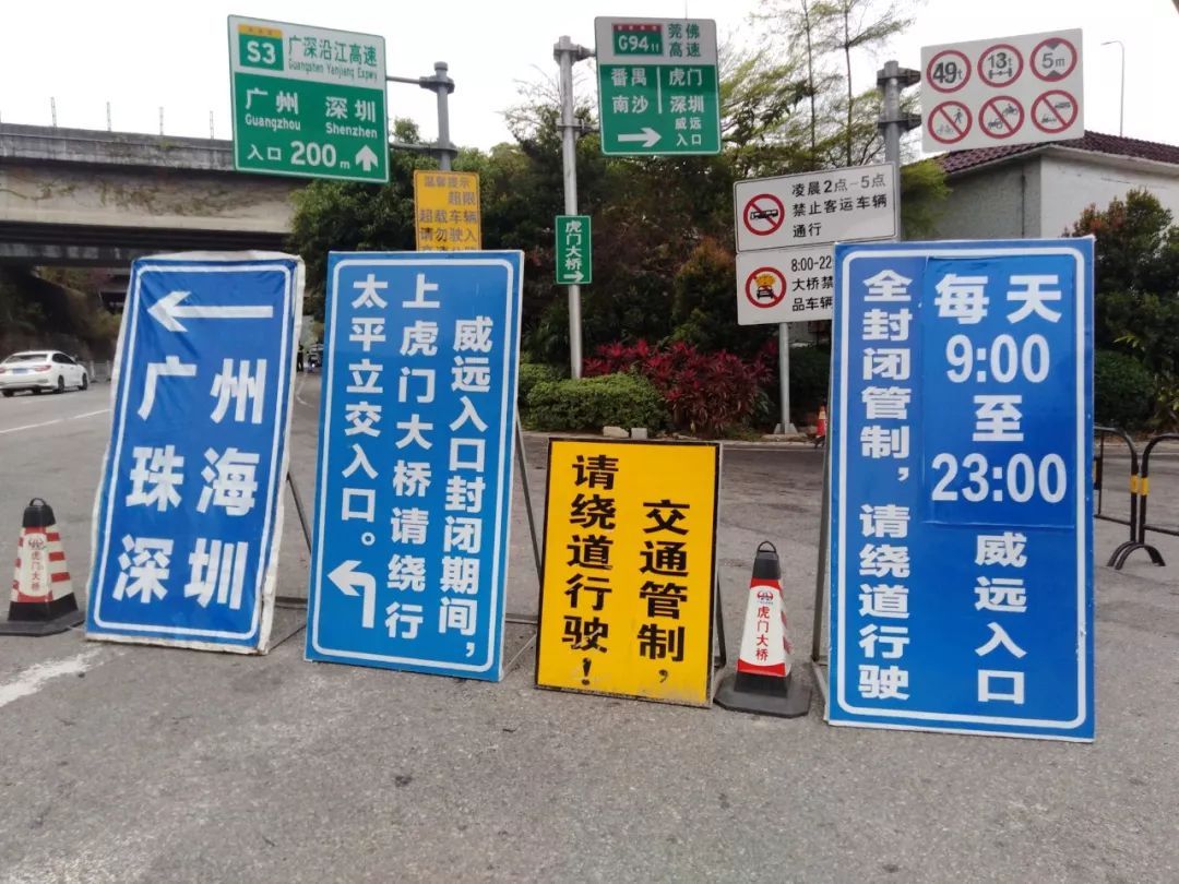 管制路段:虎门大桥威远收费站入口实施全封闭交通管制