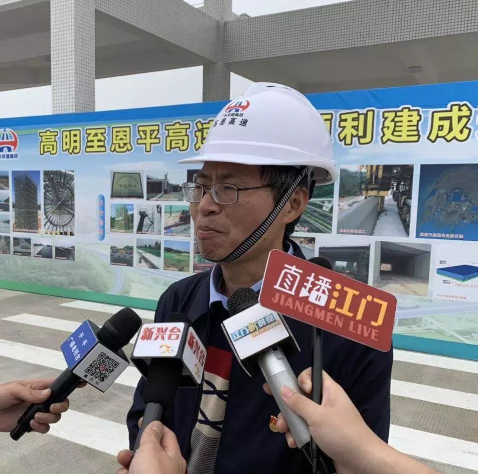 广东省高恩高速公路有限公司总经理曾田胜介绍高恩高速创新点及对江门的重要意义,他表示,高恩高速对江门开平、恩平等西部城市提供非常好的交通便利,将大力推动江门西部城市的工业、农业等产业的发展,进一步吸引投资。