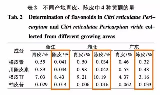 ↑图自:《陈皮、青皮中 4种黄酮成分的比较研究 》,南京中医药大学