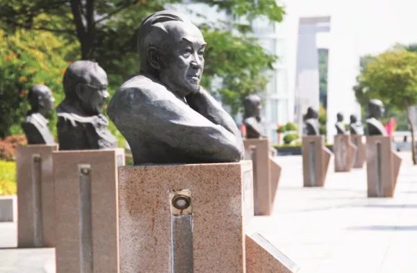 △院士路两旁分别设立江门五邑籍院士艺术塑像。