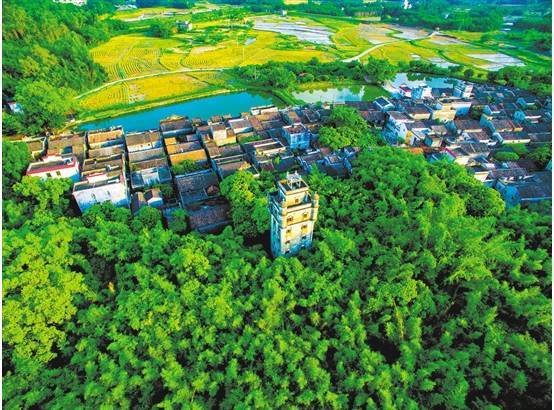 △开平碉楼绿树拥翠 黄锡球 摄