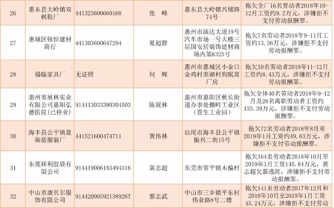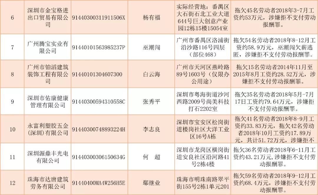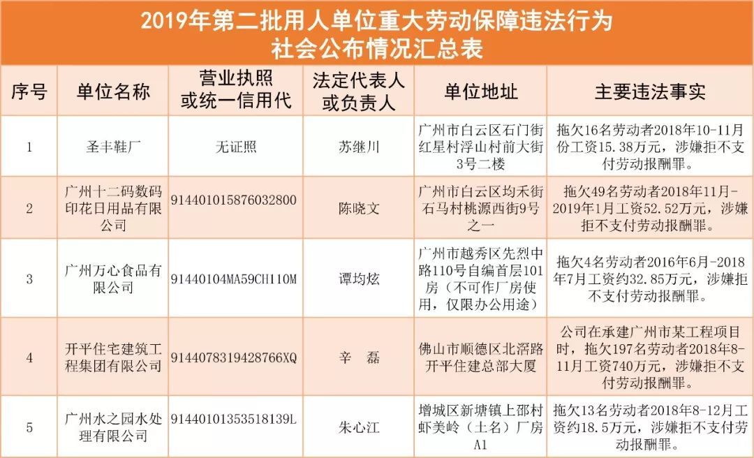 为加强对违法用人单位的社会监督,强化诚信体系建设,加大威慑力,依据《广东省用人单位重大劳动保障违法行为社会公布暂行规定》,现将2019年第二批重大违法案件予以公布。