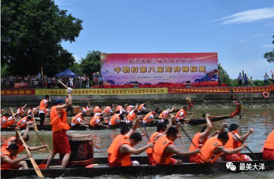 同时,当天中午12时,牛勒村第八届龙舟锦标赛在龙舟文化公园举行,共12支传统龙舟队参赛,比赛分为初赛和决赛两个阶段进行。