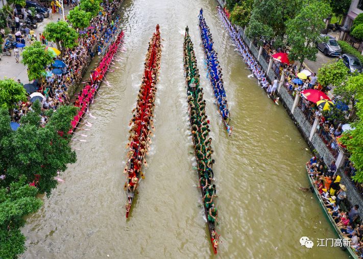 昨日,一年一度的“八龙闹端阳”在高新区(江海区)礼乐街道张围河五四村河段上演,场面热闹非凡,8条龙舟乘风破浪、一争高下,吸引数千名群众共赏盛况。