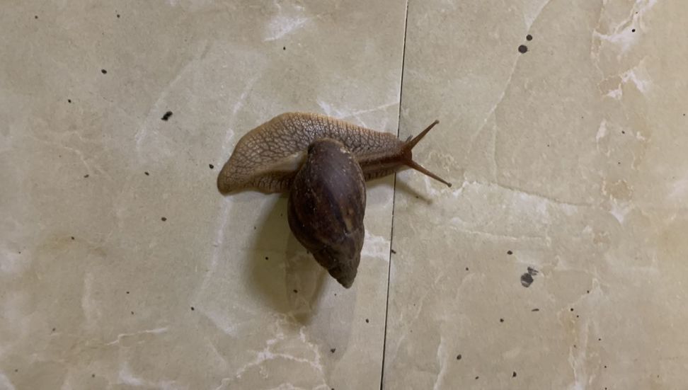 近日,家住广州番禺石楼亚运城社区的李先生发现有几只东风螺(又称非洲大蜗牛)爬到自家二楼的窗户上。当他走到楼下时,发现有数十只东风螺正在沿着外墙往上爬,墙面上留下了一道道痕迹。