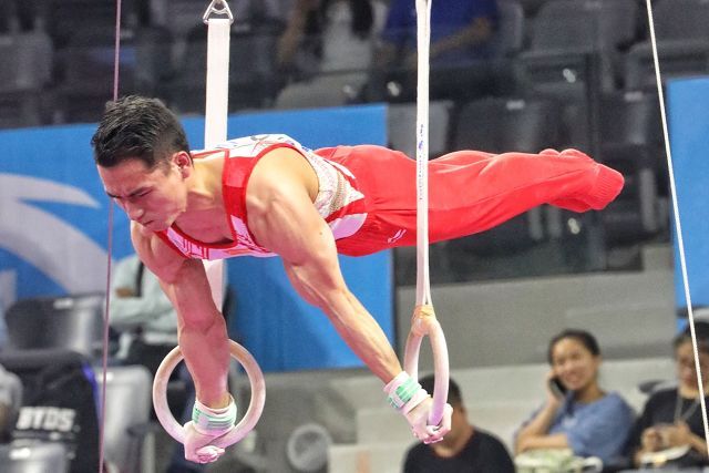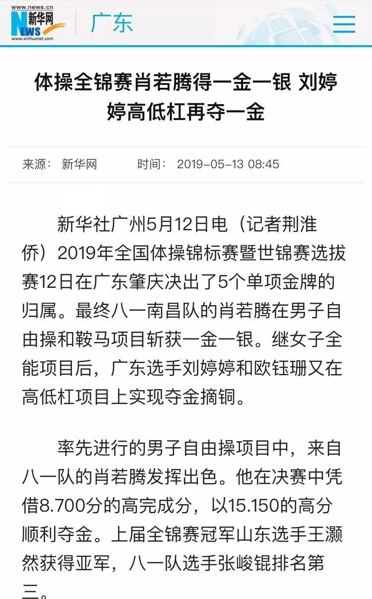 ▲肖若腾除了帮助八一队获得男子团体冠军之外,还在自由体操和鞍马比赛中收获一金一银。罗馨如 摄