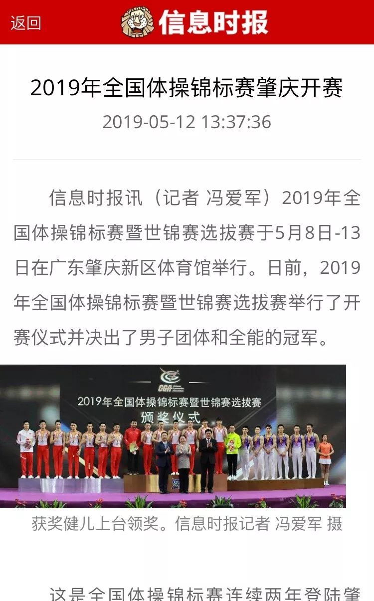 而这也将是肇庆首次举办国际性体操赛事,