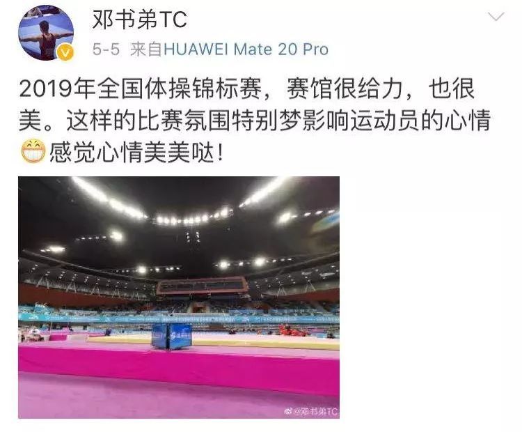 ▲来到肇庆第一天,邓书弟就在个人微博上为肇庆新区体育馆点赞