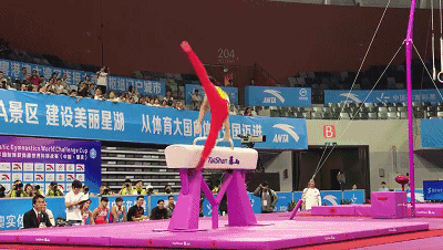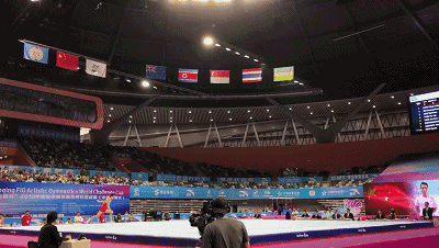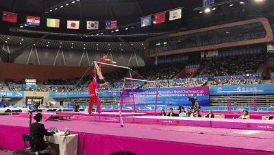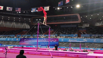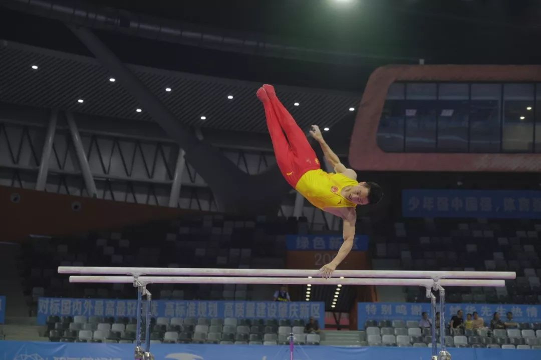 ▲邹敬园双杠项目比赛现场 西江网记者 吴勇强摄