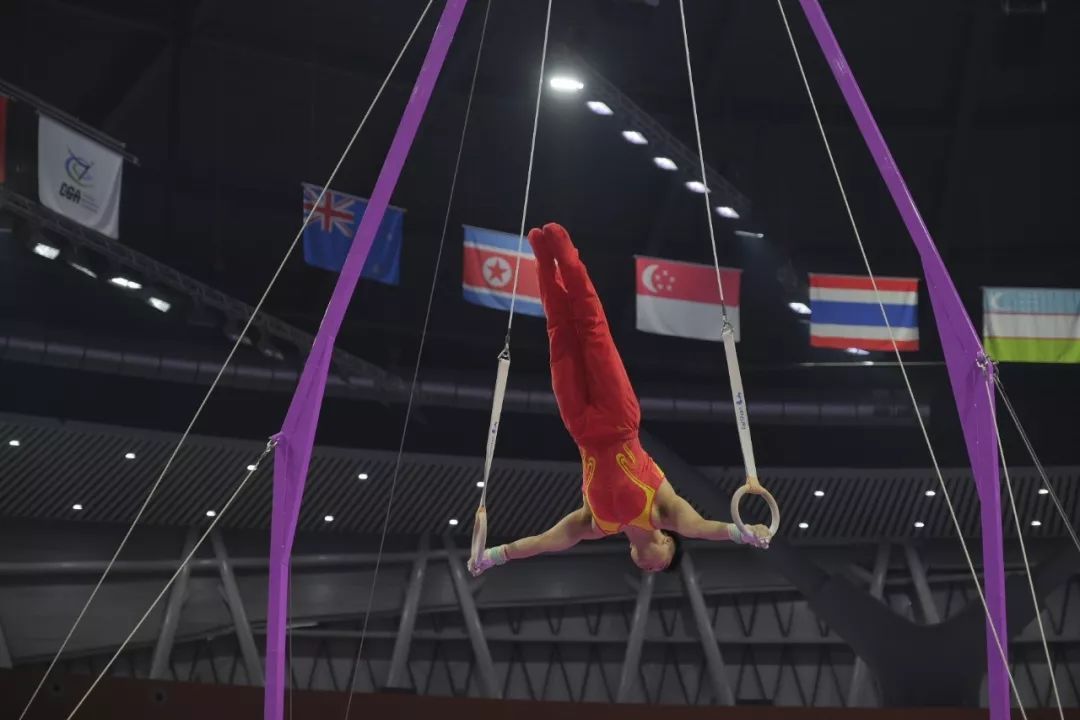 ▲刘洋男子吊环比赛现场 西江网记者 吴勇强摄