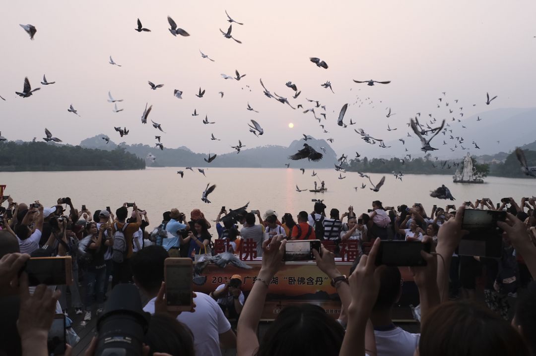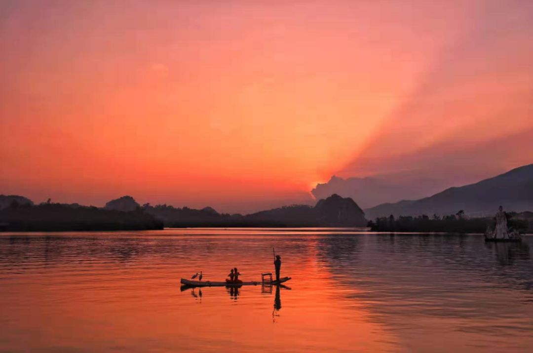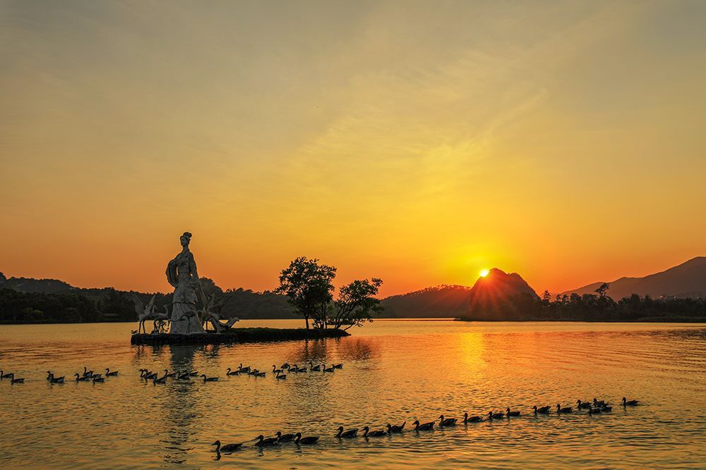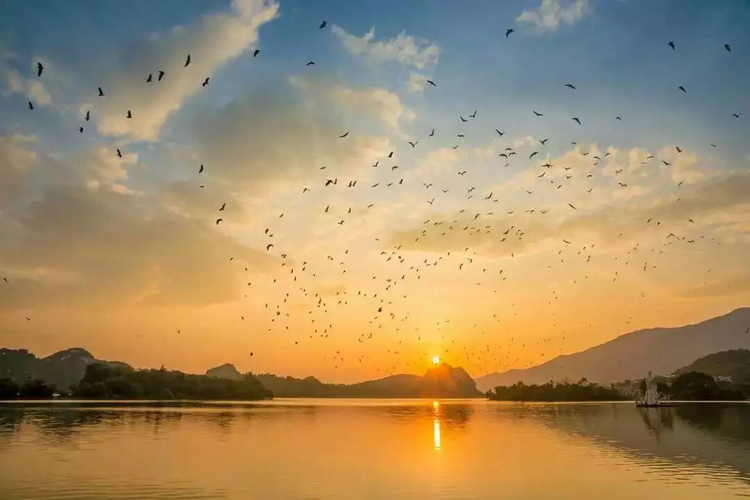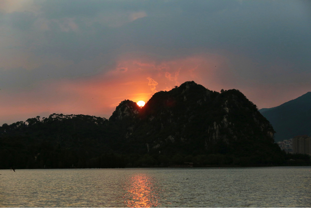 所谓“异”,是指每年的3月、9月中旬(即春分后、秋分前),晴天时傍晚6点左右,可见夕阳缓缓下坠,宛然嵌入于卧佛口中,遂形成星湖奇异的天象奇观“卧佛含丹”。