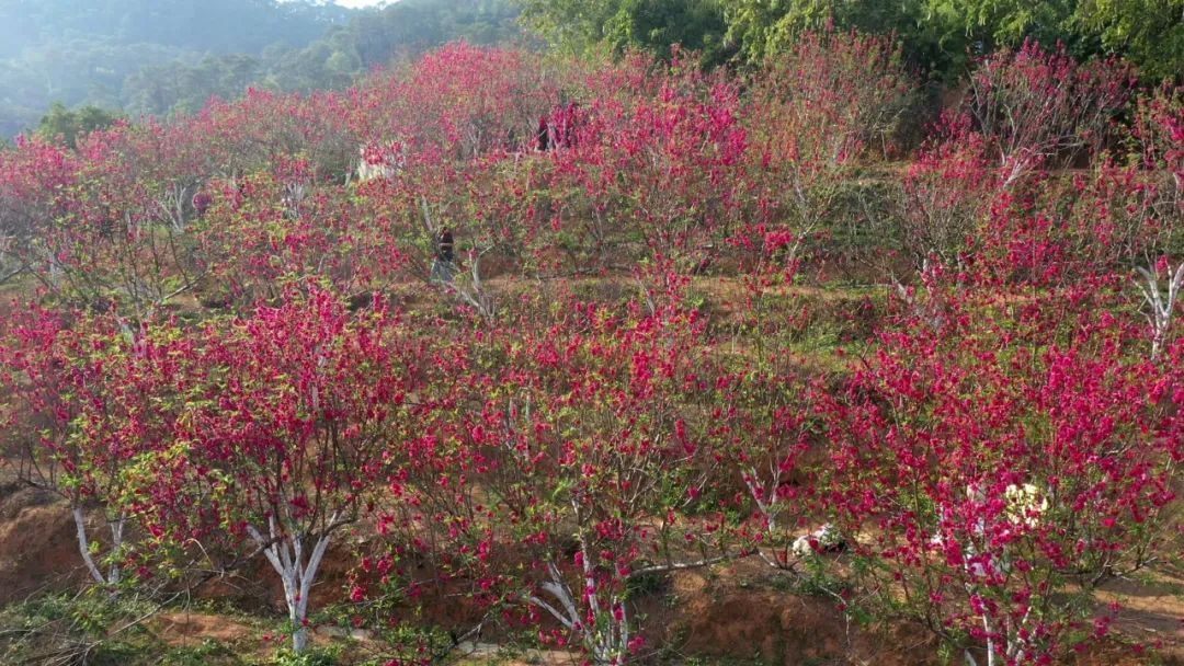 德庆香山森林公园的桃花在阳光下绽放