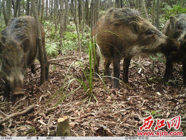 国家“三有”保护野生动物野猪对着相机摆姿势。 受访单位供图