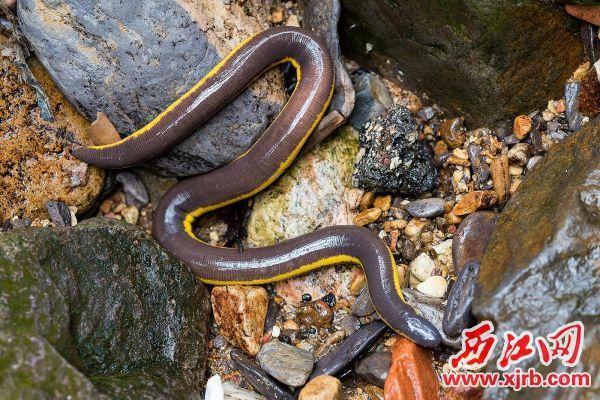 “据2009年的监测数据显示,鼎湖山拥有版纳鱼螈的数量等级非常丰富。”范宗骥指着版纳鱼螈的照片告诉记者,虽然版纳鱼螈体型像蛇,但是它没有任何攻击性。再加上它们长期穴居,眼隐于皮下,已无视觉功能,只有光的感觉。“版纳鱼螈是一种很温顺的野生动物,希望大家遇到它们时能够手下留情,让它们自得其乐。”