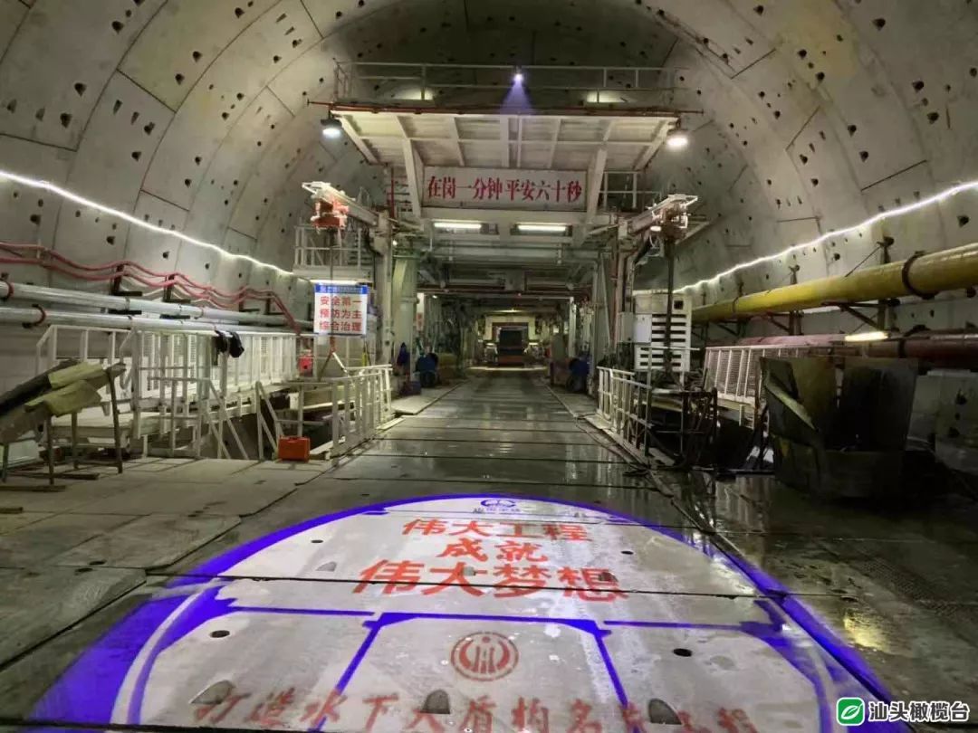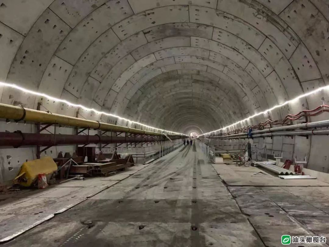 汕头海湾隧道全长6.68公里,其中海底盾构施工段长度超过3000米。隧道建成后为双向六车道,主线设计行车速度60千米/时,内部空间分为三层,顶部为排烟通道,中部为三车道行车层,底部为救援通道及管廊。作为连接汕头中心城区南北两岸的重要交通工程,海湾隧道对形成全天候的过海交通网络,推进南部大建设具有重要作用。