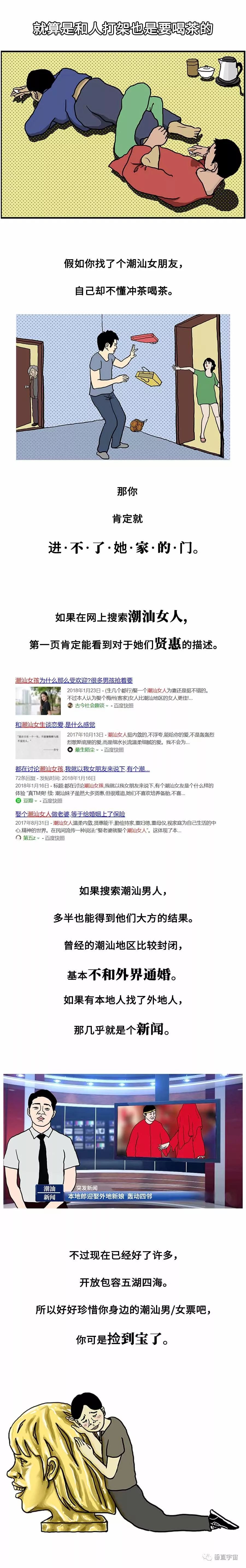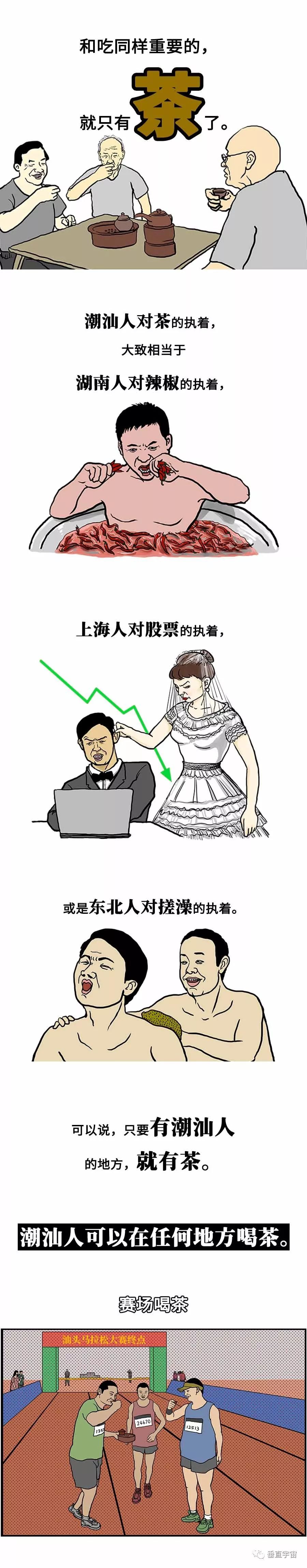 “对于潮汕人来说,提及潮菜,他们嘴角总会浮现一抹微笑。”“和吃同样重要的,就只有茶了。”“如果你对你的潮汕男友提出购物要求,而他说买买买,别激动,他只是在说潮汕话(不要不要不要)。”风趣幽默的语言、生动形象的“魔性”漫画,让这版长图漫画在发布后不久,阅读量一路飙升,突破十万加。