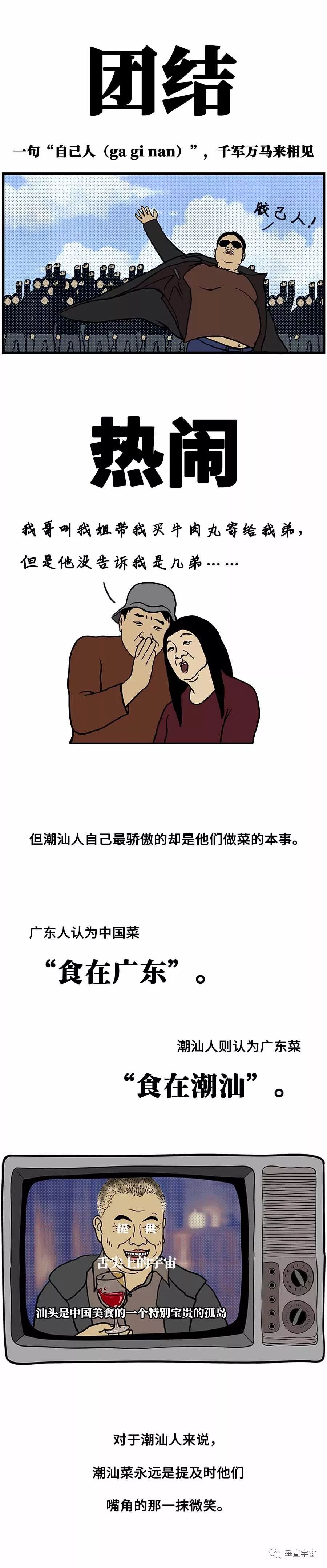 为什么是潮汕人呢?据创作团队垂直宇宙告诉记者,这是因为潮汕人有着自己独特的特点,而且创作团队与潮汕“颇有缘分”。虽然关于地域性的选题已经有很多人做过,但对潮汕地区,还没有人去整合创作,所以选择以潮汕人为对象进行漫画创作就顺理成章了。