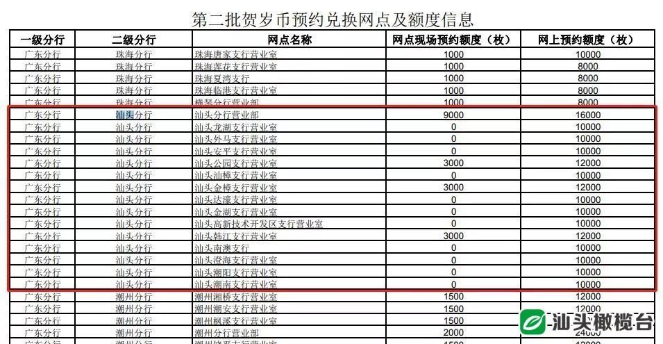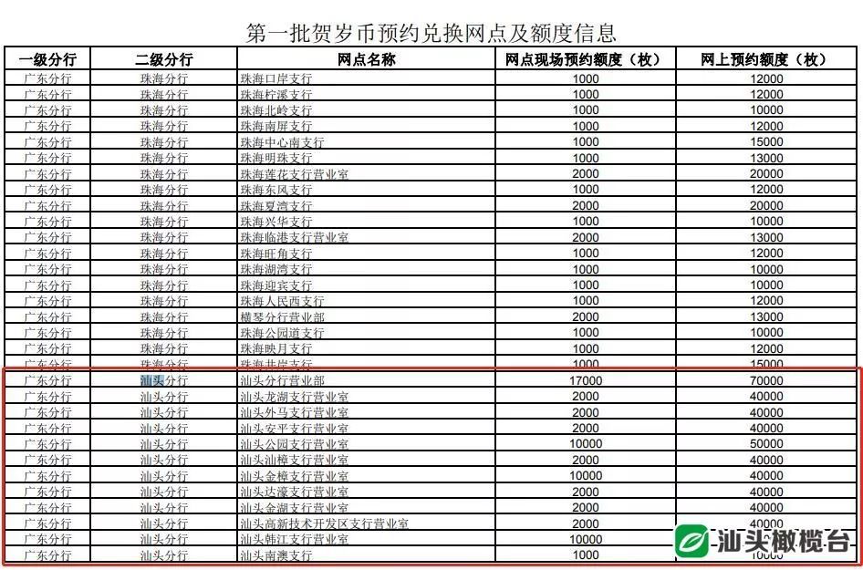 中国工商银行对预约兑换网点及分配额度进行了公示。根据公布的预约网点及额度消息,工商银行汕头分行营业部、龙湖支行营业室、外马支行营业室、安平支行营业室、公园支行营业室等都可进行现场预约和网上预约。