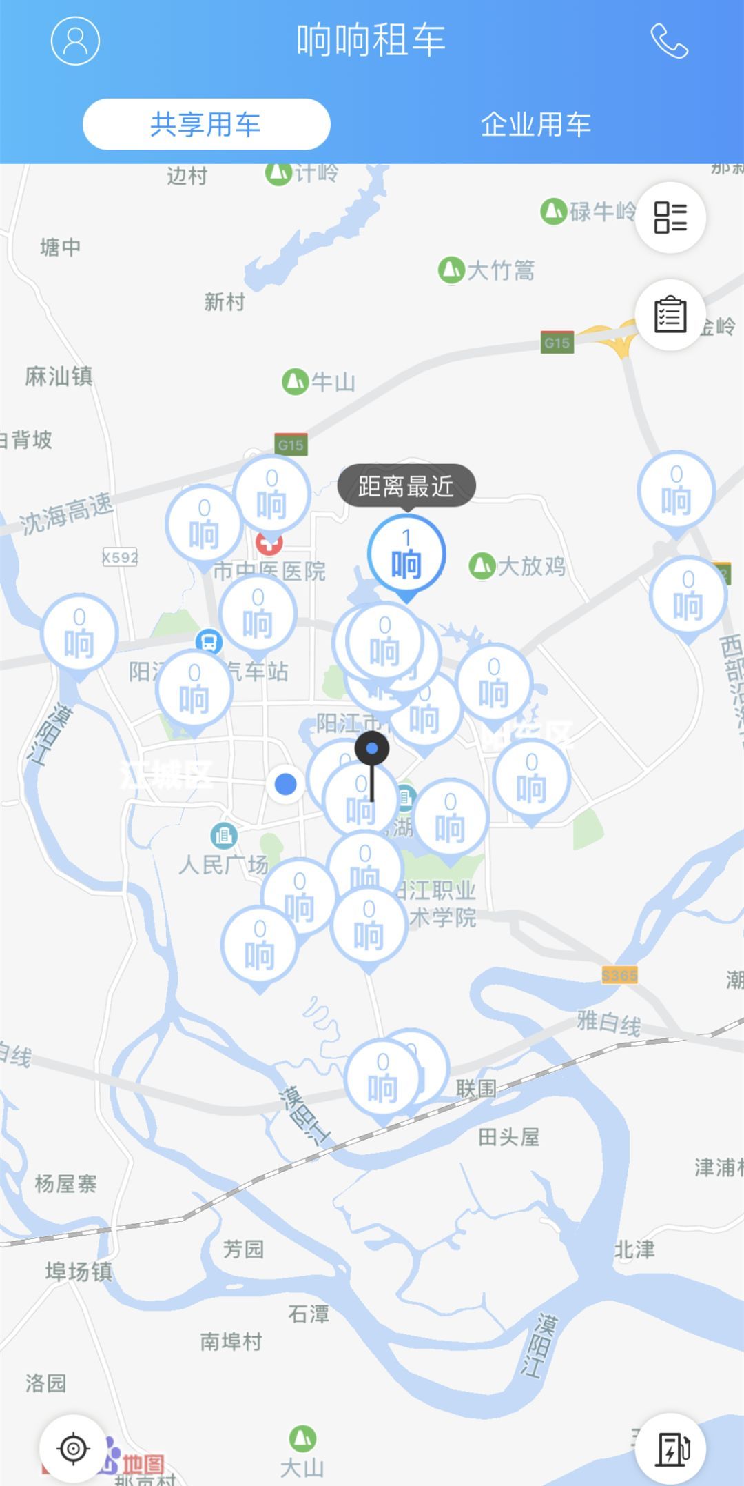 24日上线的60辆新能源共享汽车分为四座、五座小车和六座MPV三种车型,分布于市区30个网点。25日上午,记者打开响车车APP搜索附近网点,发现大部分网点均显示无车状态,只有3个网点尚有车辆可用。打开车辆列表,可见到可供使用的车辆的位置、电量、车辆价格和车牌等信息。