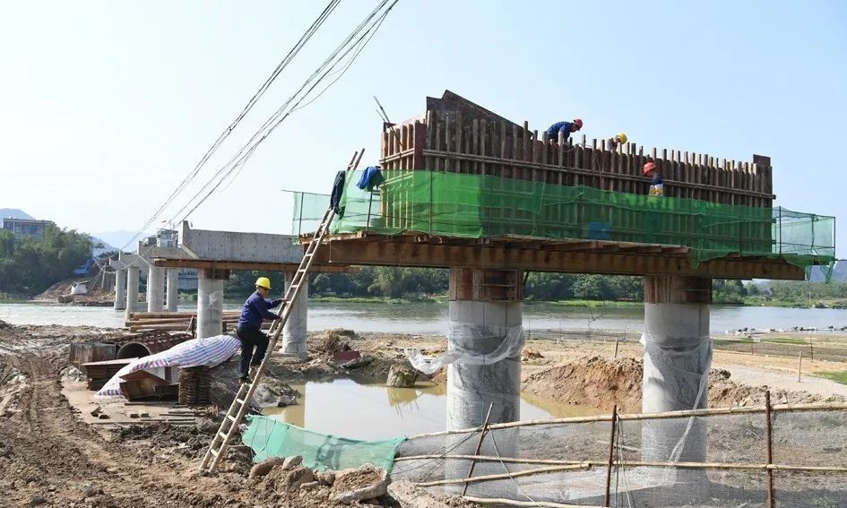 目前,合水大桥已完成5卡共10根直径各为1.6米的桩基及上部钢筋混凝土小箱梁施工,工程总体施工正按计划安全有序高效推进,计划今年7月底建成通车。