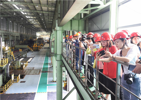 走进位于东海岛的宝钢湛江钢铁有限公司,30余名记者编辑聚精会神,“现场目击”湛江钢铁生产管控流程、热轧生产线、成品码头等。