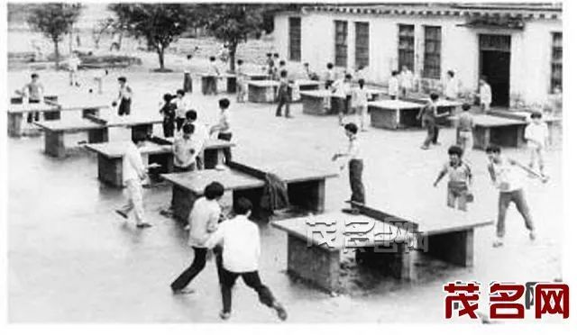 上世纪八十年代,广东石油学校的学生非常喜爱打乒乓球。这是当年学生们在运动场练球的情景。