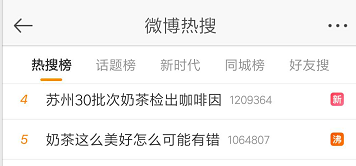 据悉,一杯美式咖啡(中杯)的咖啡因含量为108毫克,一罐红牛饮料中的咖啡因含量为50毫克。本次抽检结果发现,30批次奶茶全部沦陷,均检出咖啡因,平均含量为239毫克/千克。来自四云奶盖贡茶(购物公园店)的1批次中杯珍珠奶茶,咖啡因含量达483 毫克/千克,经过换算,这杯中杯奶茶咖啡因含量是一杯中杯美式咖啡的2倍多,或等同于喝下4.3罐红牛。