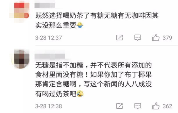 买奶茶时,通常有 "全糖、半糖、无糖 "或者 "七分甜、五分甜、三分甜 "的选择,商家解释无糖只是制作过程中不额外添加糖,并没考虑原辅料是否含糖。检测人员表示,这显然与消费者的理解之间存在着明显偏差,建议对含糖摄入有特殊要求的消费者要尽量少饮用奶茶。