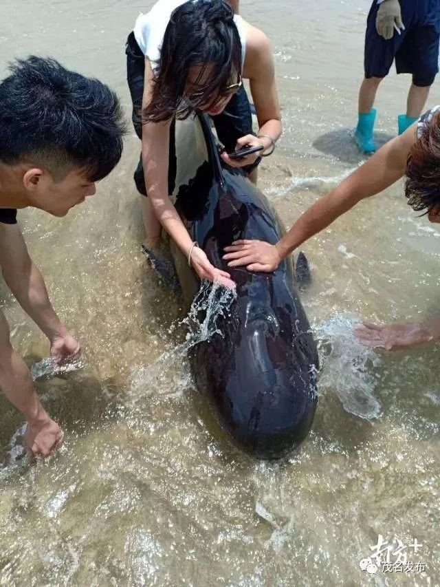 据茂名市渔业部门介绍,5月25日11时,一条长约2米、重约120公斤的鲸豚在当地海滩搁浅,渔业部门接报后,立即组织前岚村委干部、渔民群众前往救助。