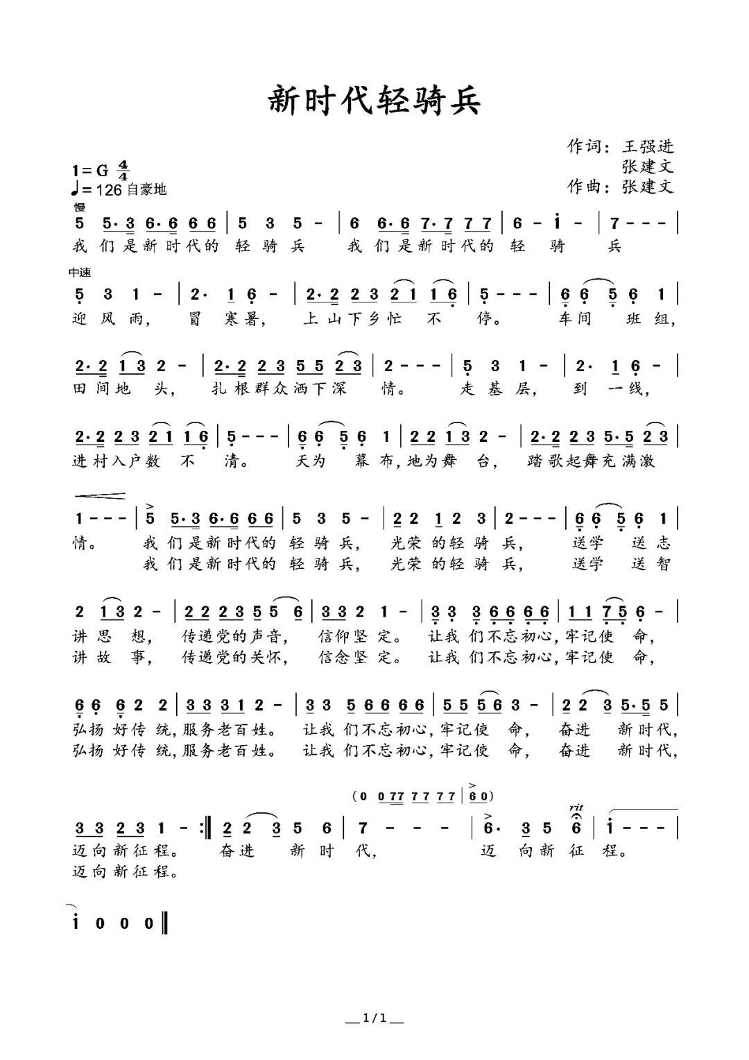 《新时代轻骑兵》是一首优秀的新时代文明实践志愿者原创歌曲,由王强进、张建文、李思音、潘旭、林俊、林盛等广东知名青年音乐家联手打造,融思想性、艺术性、时代性于一体,极具艺术感染力,充满了“撸起袖子加油干”的昂扬向上的精气神,体现了担当作为和奋发有为,对传播广东声音、讲好广东故事作出了贡献。