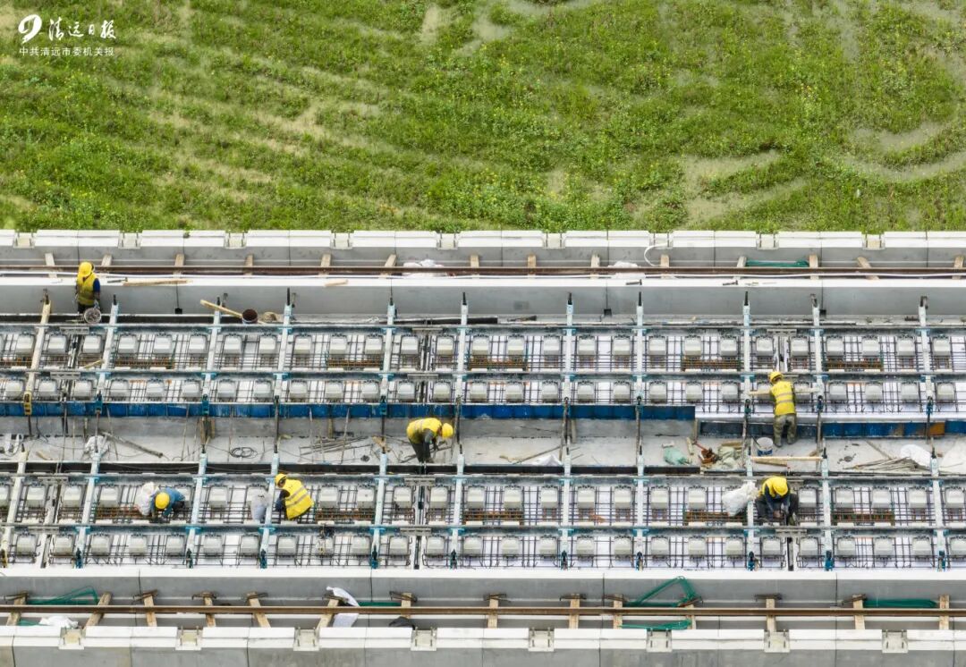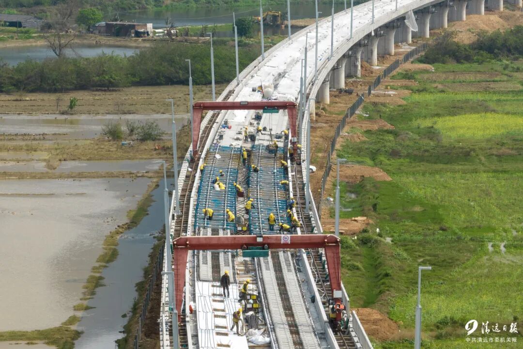 目前,广清城际北延线的重大施工节点已完成,项目总体施工进度完成超过了七成。全线桥梁下部主体结构和箱梁架设已完工,项目全面转入无砟轨道、沿线电气化、站场内部装修等桥面系附属工程的施工。