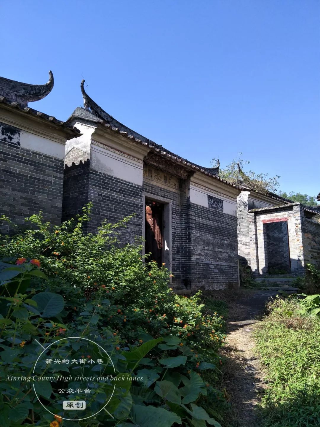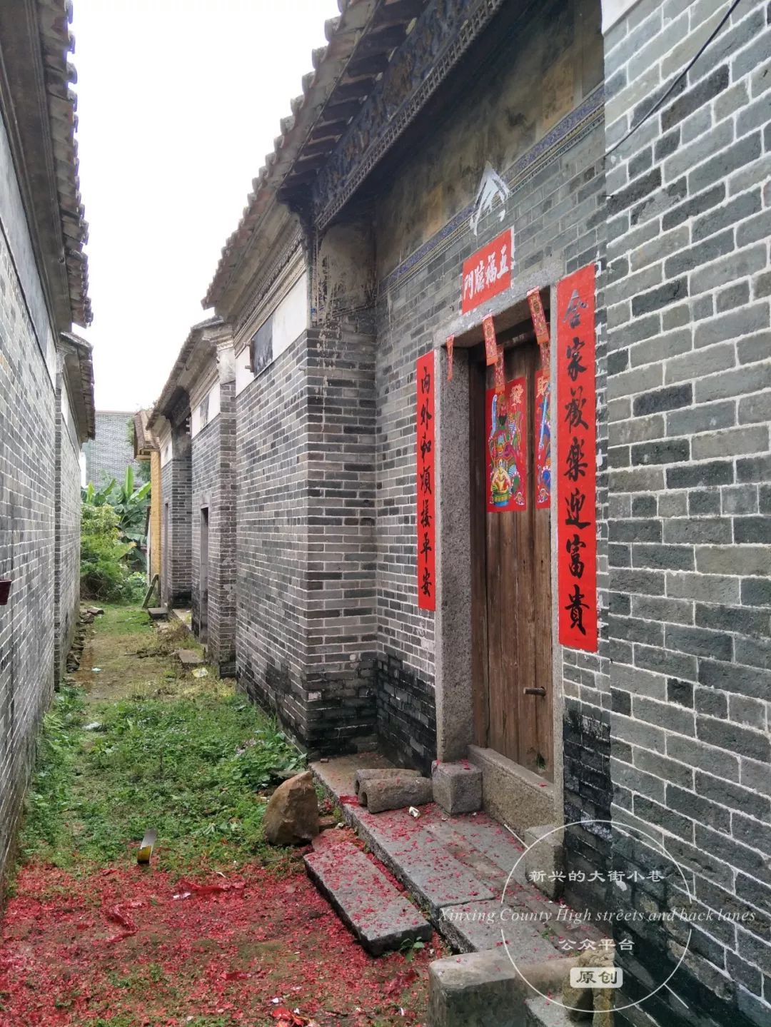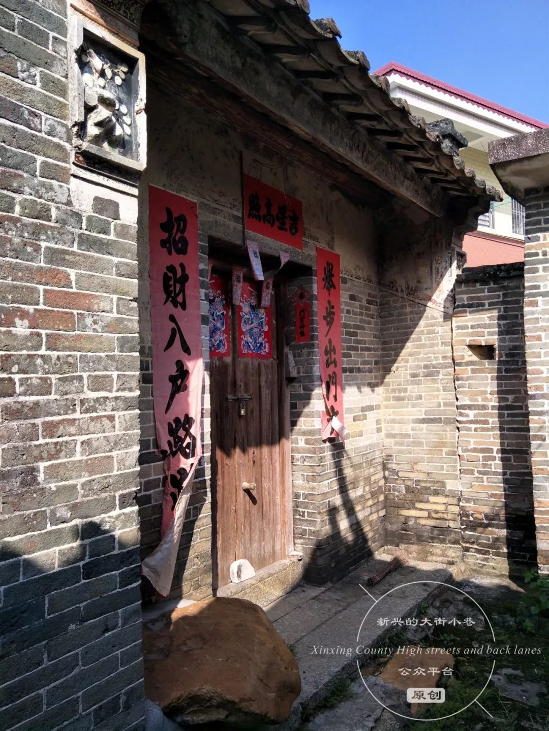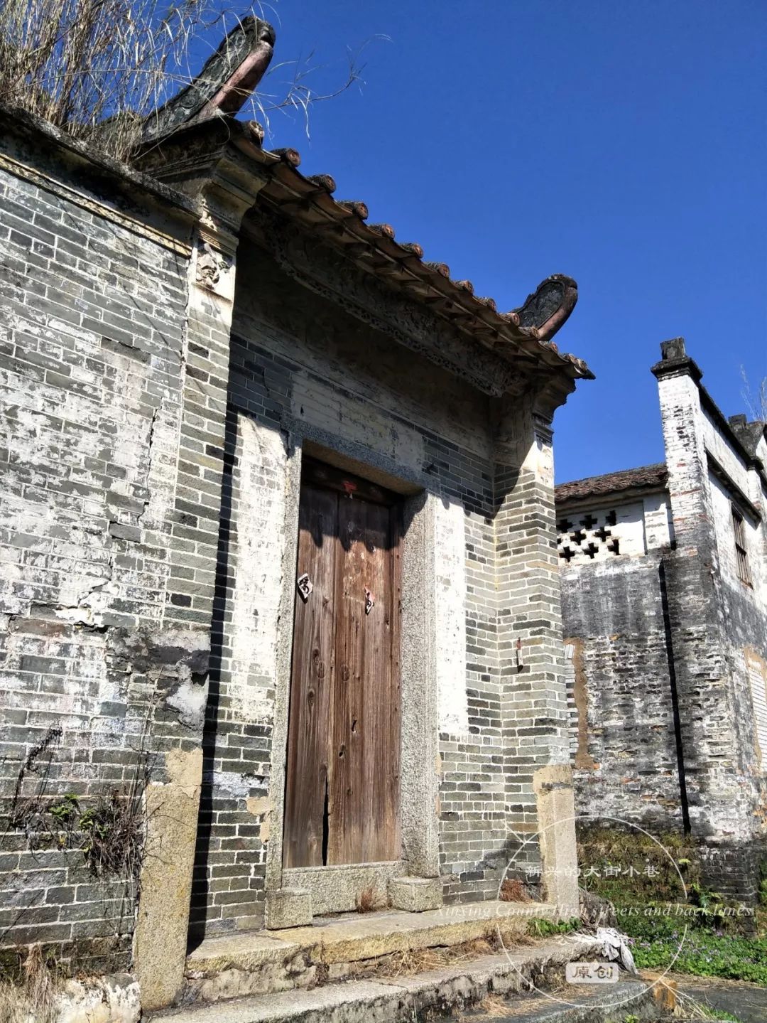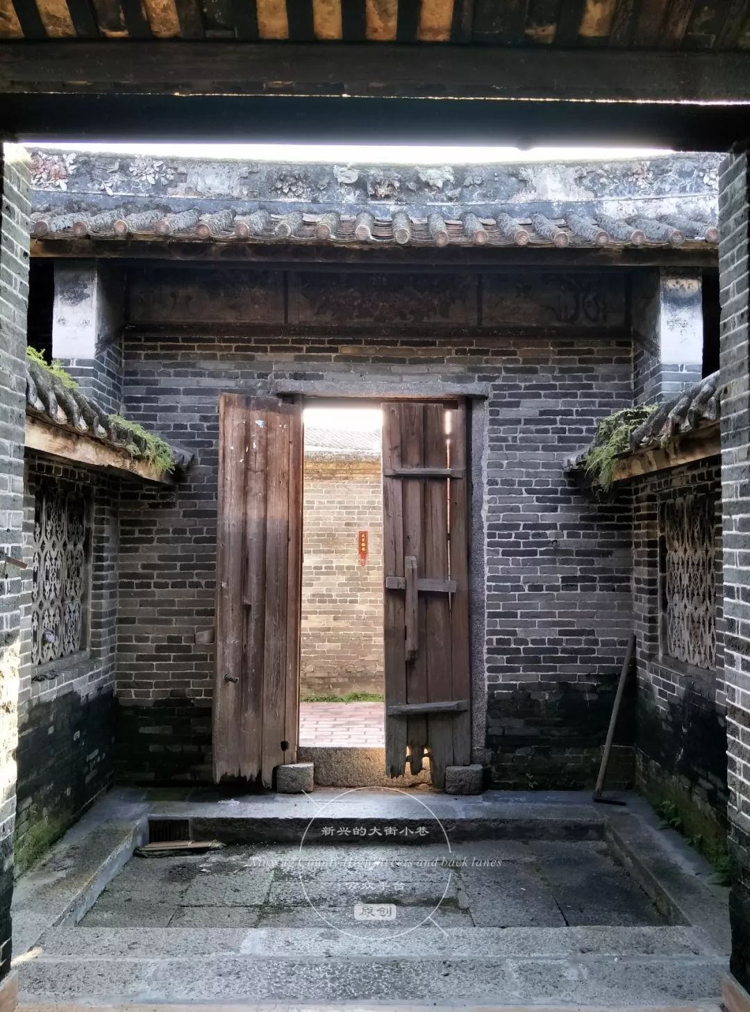 沿着陈振诚大屋一旁的小巷往前走,在巷口牌坊处的右侧,有一处显眼的庭院。四周是约两米高的围墙,围墙和院门是上世纪八九十年代加建的。推开院门,里面是一个面积约十几平方米的小庭院,庭院内侧是一座两进的青砖大屋。