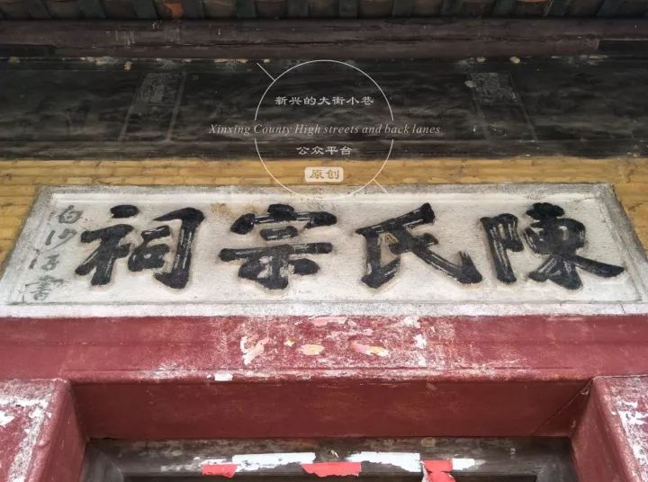 “陈氏宗祠”匾额为明代著名教育家、广东四大名儒之一的陈白沙先生所题,字迹清晰。
