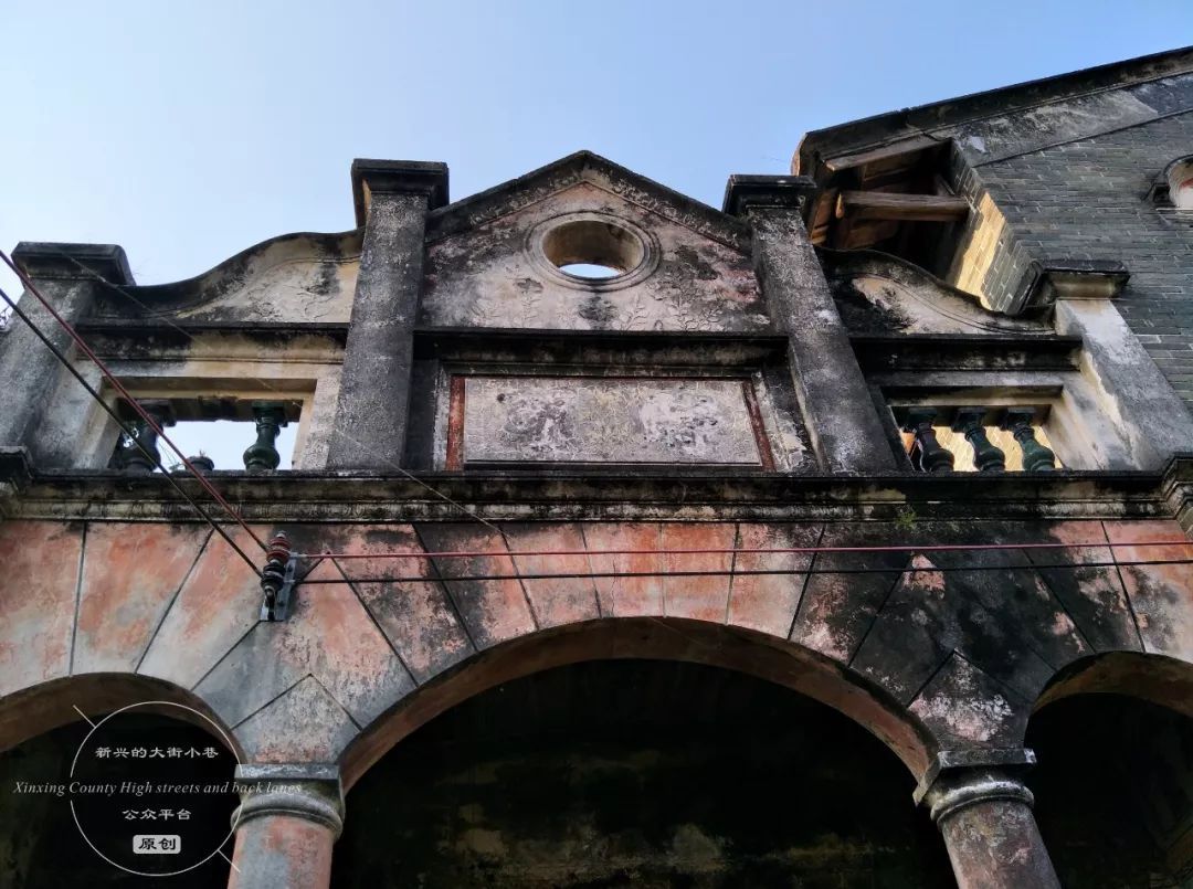 当上了“二县长”的陈福基,又在老家洞口圩经营颇具规模的“昆合商行”,逐渐发展成为大稳村中屈指可数的大户。有了财富和地位的陈福基,便仿照开平、高鹤等地他见过的建筑样式,请来了洋设计师,和新兴当地的泥瓦匠们一道,修建了这座在当时新颖别致的中西合璧建筑。