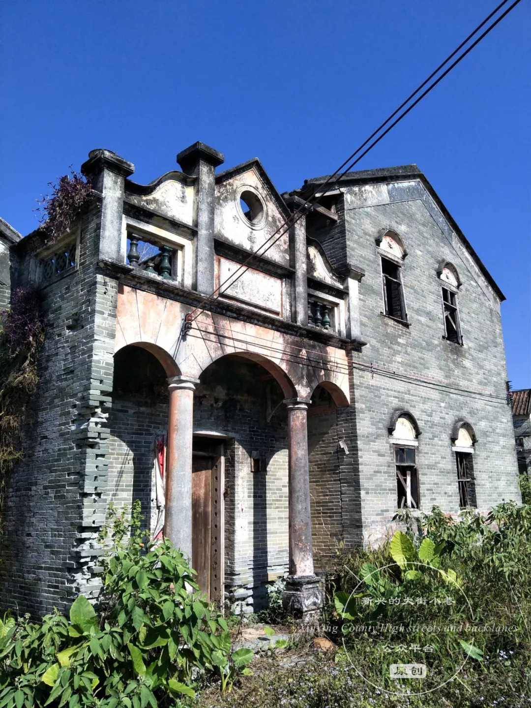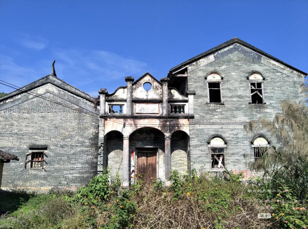 漫步至大稳村尾端,赫然看见一幢中西合璧的二层小楼矗立在田野之中,周围是零散的乡村民居,第一感觉可以用鹤立鸡群来形容。