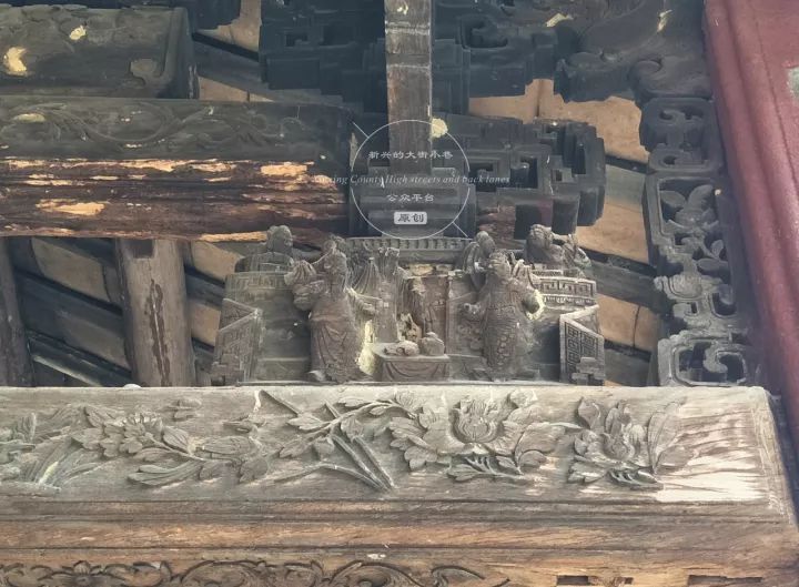 其正脊装饰分为单层或双层爽脊。灰雕以梅兰菊竹、花鸟鱼虫为主,富有地方特色。檐板木雕以人物、花鸟为主,用料考究,造工精细,栩栩如生。