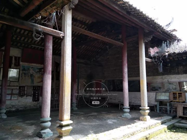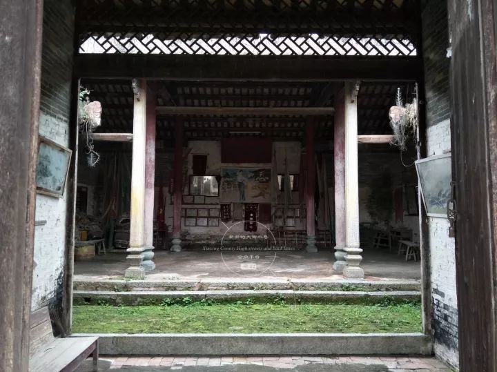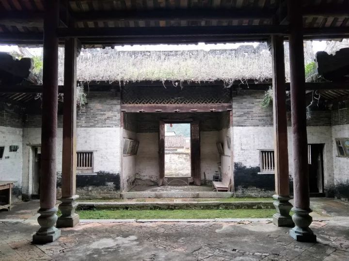后天井两侧为卷棚顶檐廊,后堂面宽三间,中厅为陈氏祖堂,两边设有房间,前有檐廊。