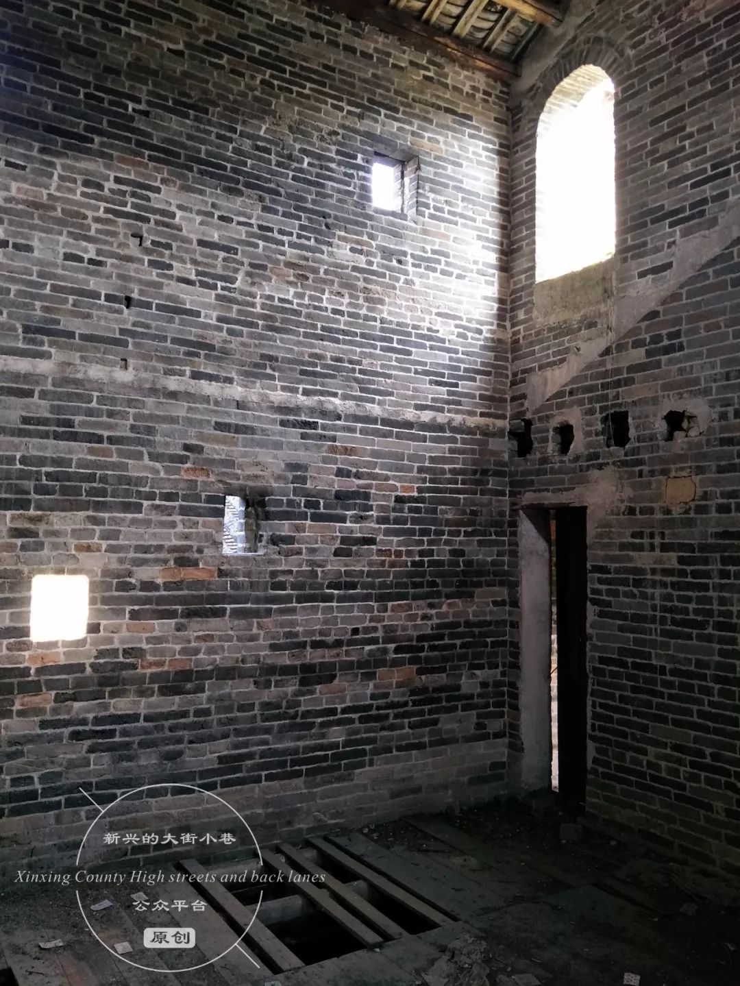 图为碉楼内的射击孔