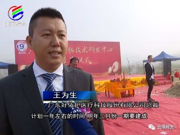 广东好依护医疗科技股份有限公司总裁王为生:“我们的项目将在今年三月份动工,计划一年左右的时间,明年三月份一期要建成,到2020年的12月份,二期整个项目要完成,总的建筑面积是在三万平方米左右,能为云浮直接带来就业岗位200左右,每年能产生的直接税收约3000万,我们这项技术在国内在起步研究阶段,我们这个项目投产以后,能填补质谱这项技术在国内的空白。”