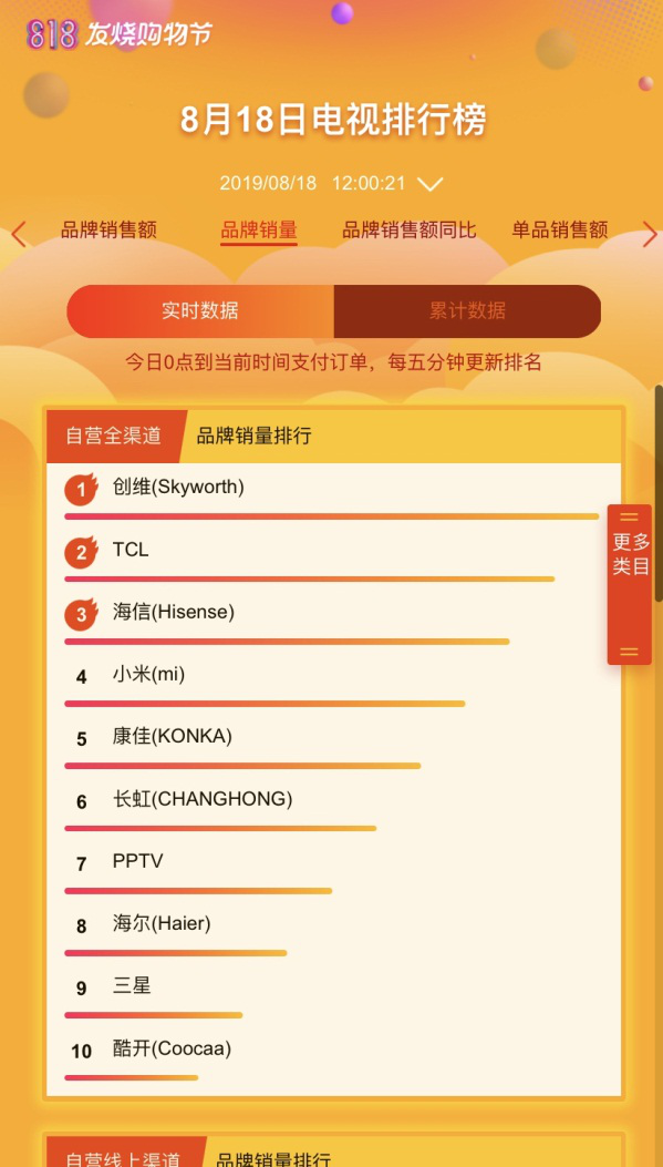 818迎来收官冲刺战。18日中午,苏宁易购发布12小时半程战报。