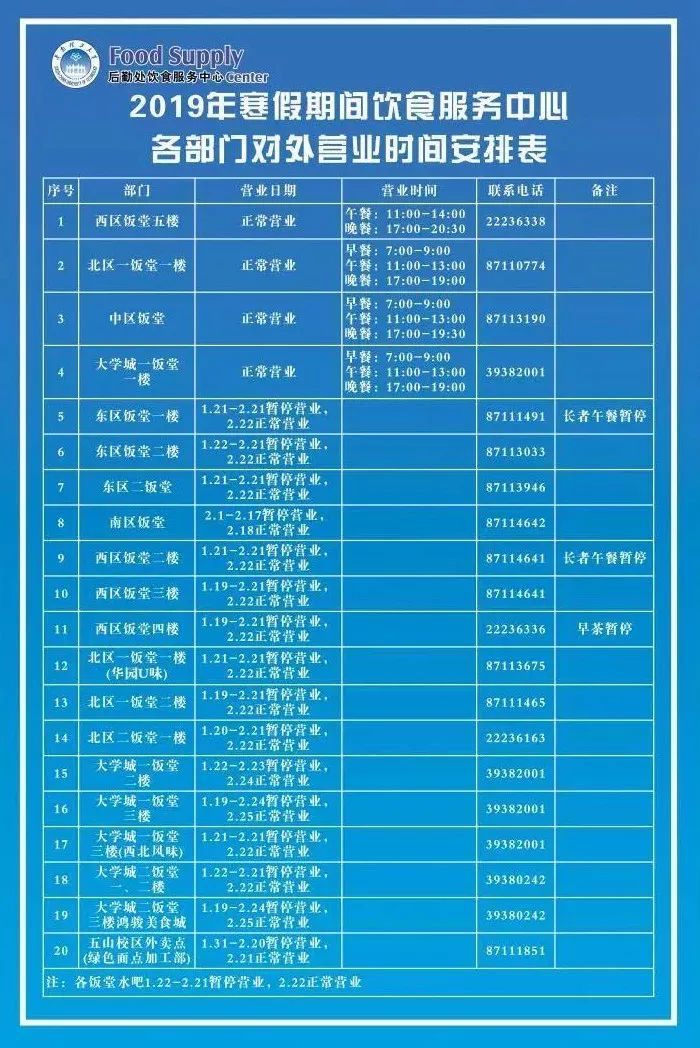温馨提示:2019年2月4日至7日,留校学生可凭学生证在饭堂登记,免费用餐。