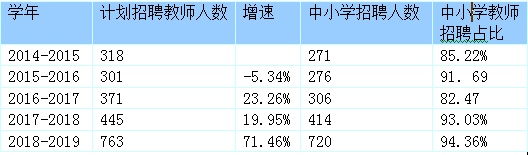 结论一,南海的公办师资需求从2016年起猛增,至2018-2019学年的增量更直接等于2014-2015全学年招聘计划量。