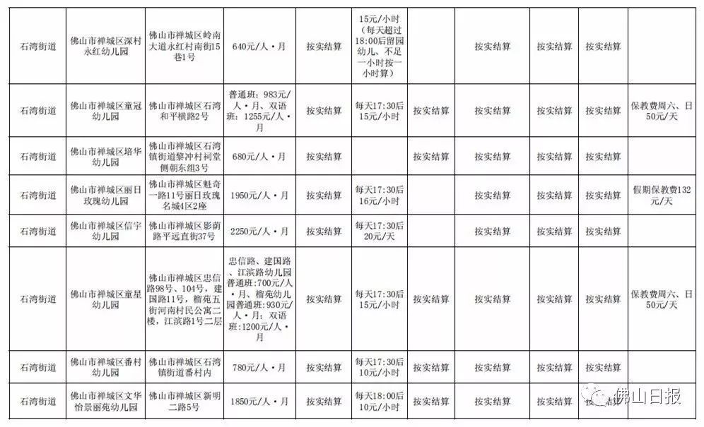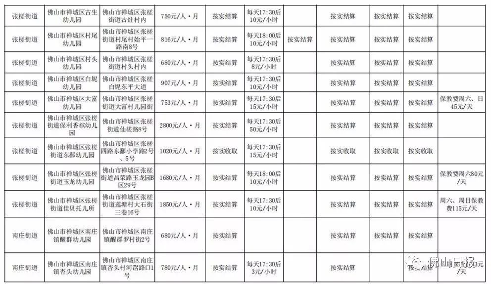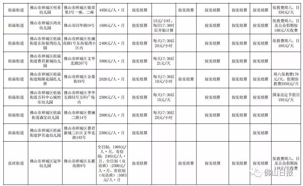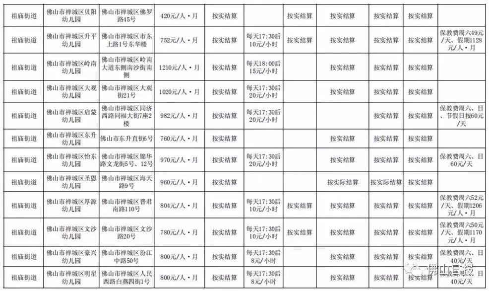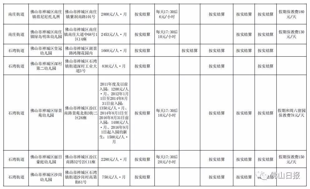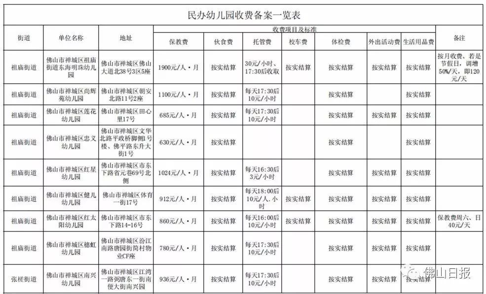 注:以上收费标准为禅城区发展规划和统计局5月20日更新,实际收费请以幼儿园最终公示为准,敬请留意。