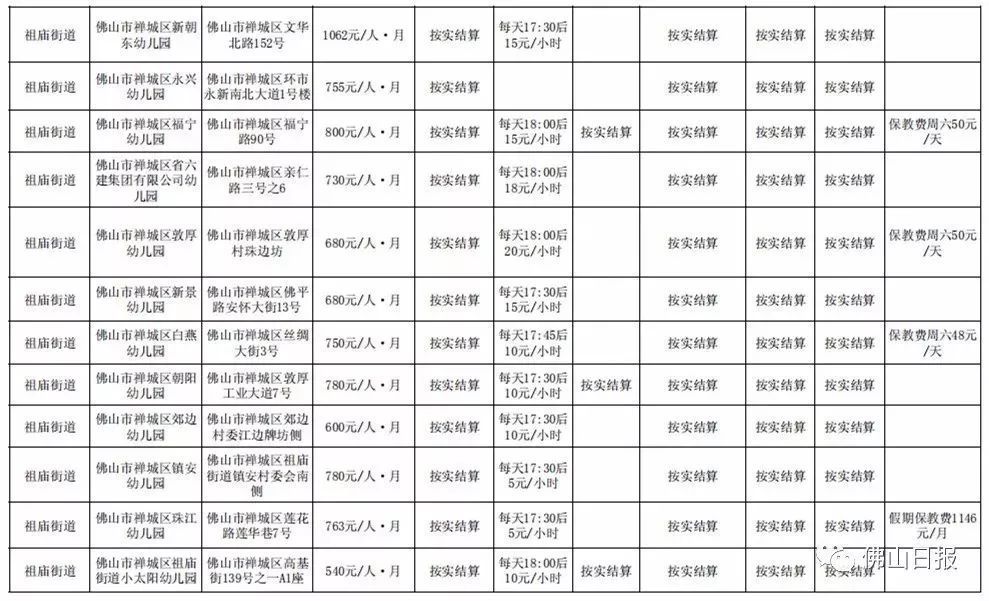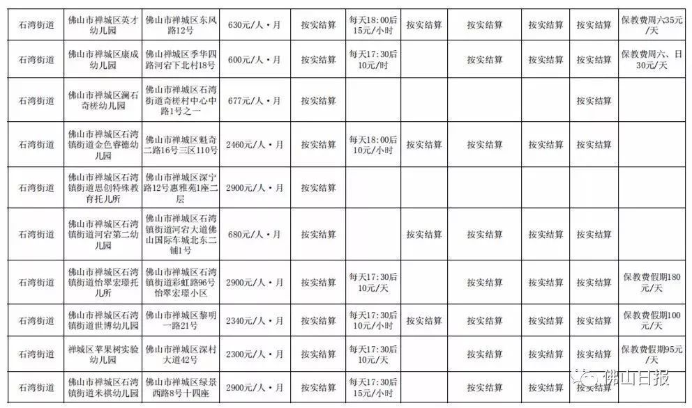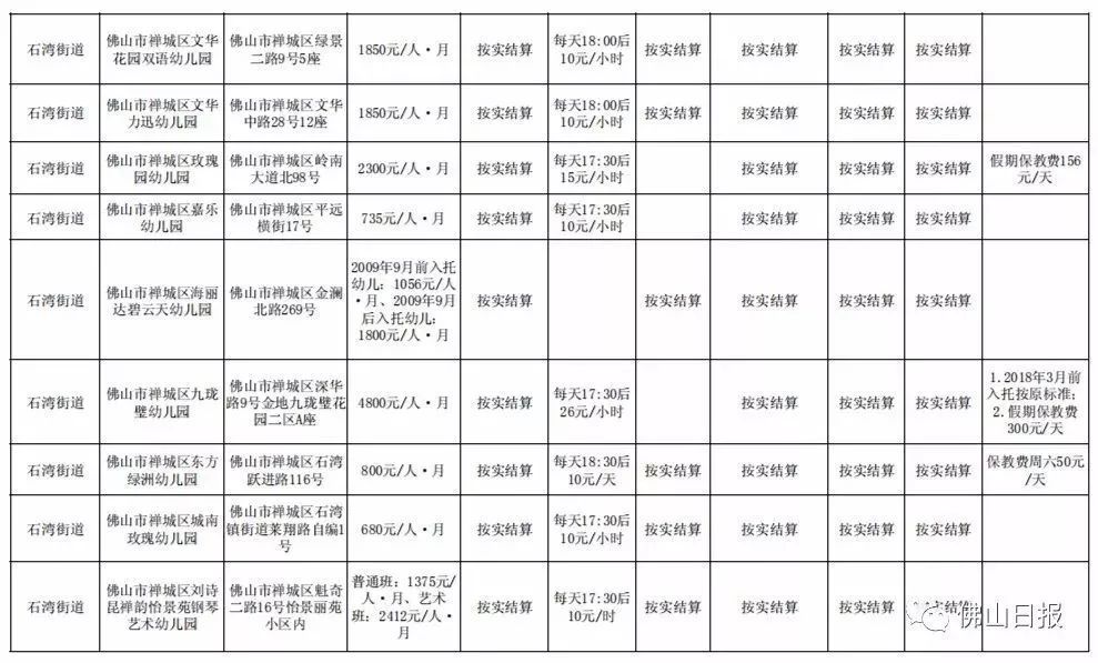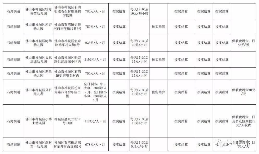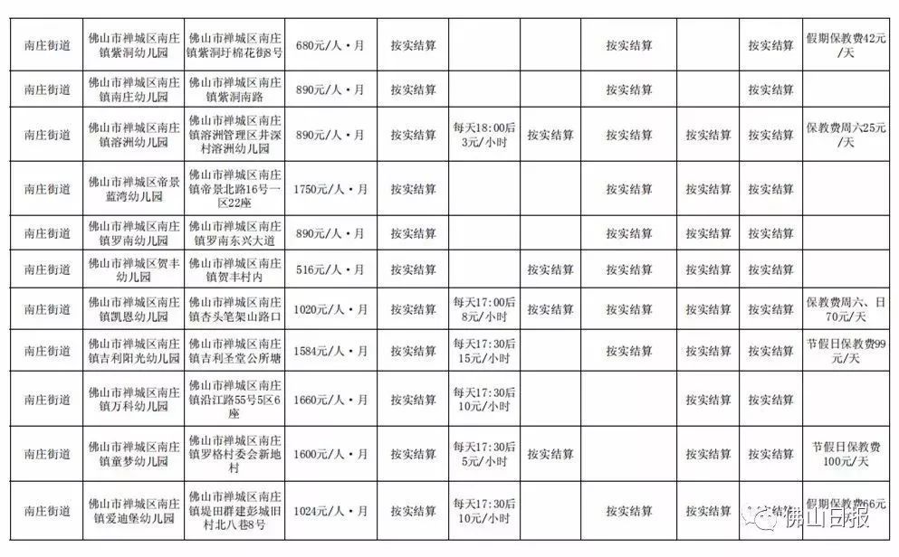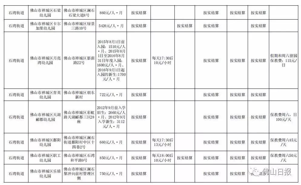 注:以上收费标准为禅城区发展规划和统计局5月20日更新,实际收费请以幼儿园最终公示为准,敬请留意。