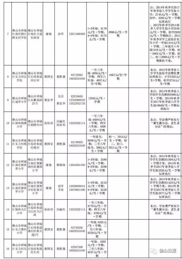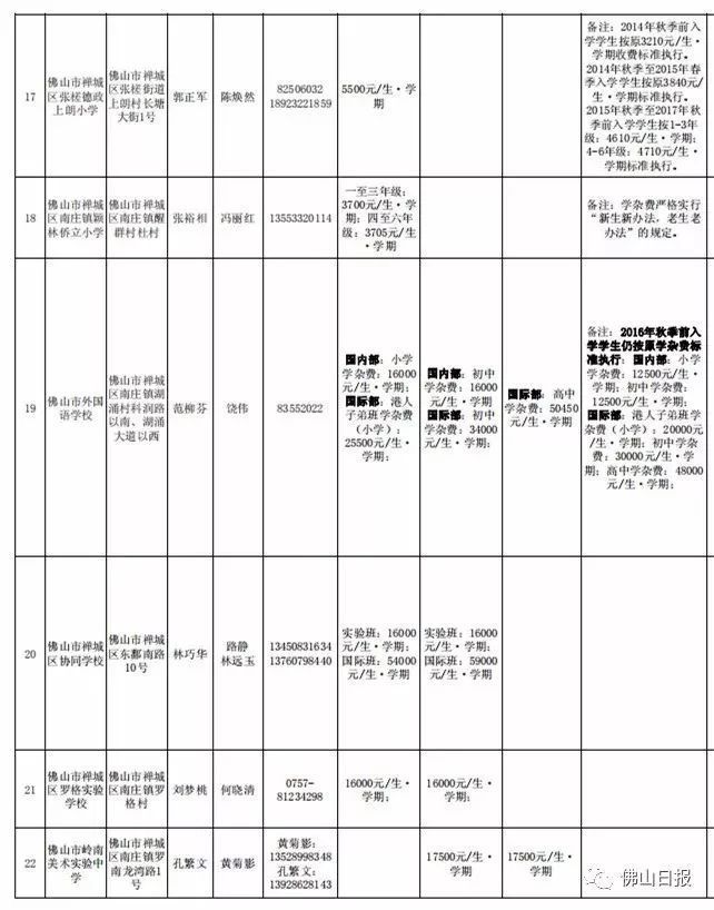 注:以上收费标准为禅城区发展规划和统计局5月20日更新,实际收费请以学校最终公示为准,敬请留意。