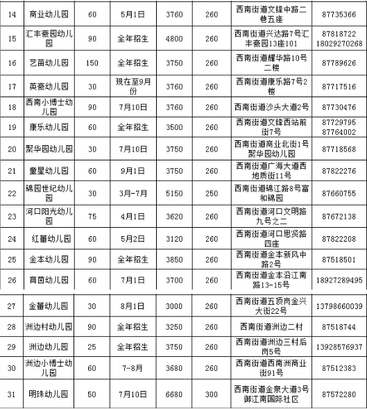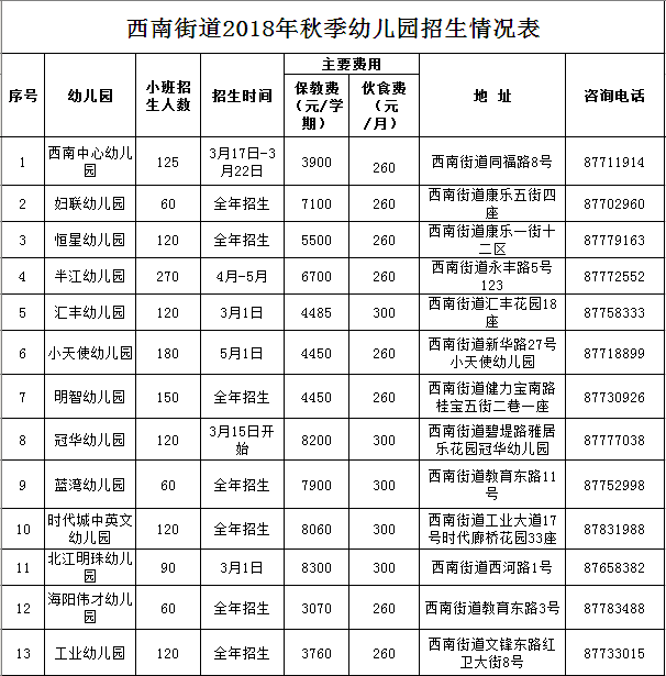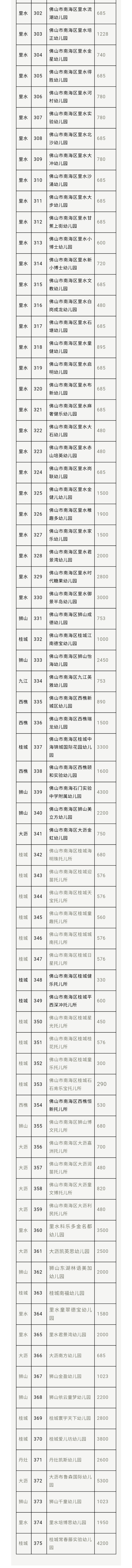 今年3月底,三水区38个幼儿园秋季招生情况表出炉。
